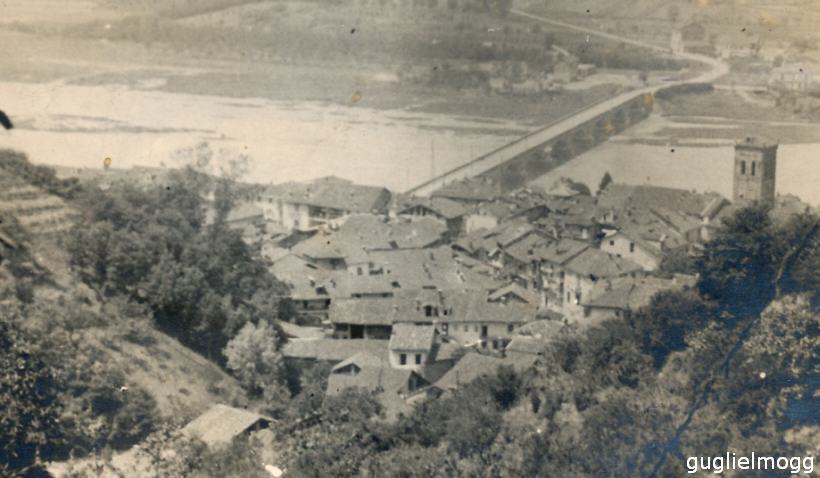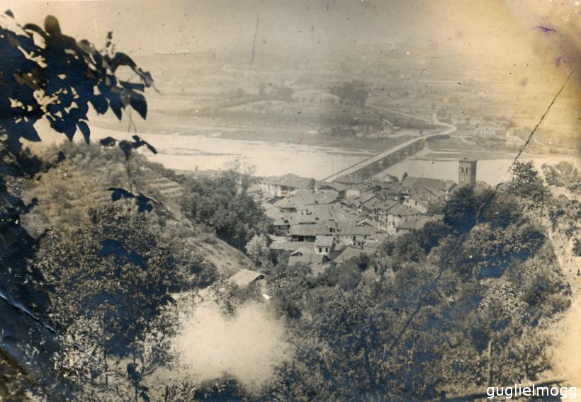 Panorama del Ponte ed Oltre Po dalla salita di Moncanino, in cui intravede la casa di famiglia e l’estensione del letto del Po nel punto in cui fu scattata la foto appena descrittaPanorama del Ponte ed Oltre Po dalla salita di Moncanino con ingrandimento sulla casa di famiglia di cui si notano le tipiche terrazze aperte